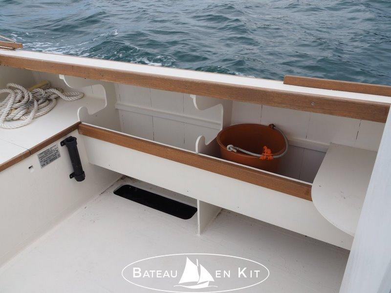 Cet ensemble comprend tous les éléments de contreplaqué marine qui entrent dans la composition du Koulmig 23, soit vingt six panneaux de quatre épaisseurs ou essences différentes. Les cloisons de structure longitudinale et transversale tiennent lieu de gabarits de construction de la coque. Toutes ces pièces sont réalisées en découpe numérique, offrant ainsi la plus grande précision de réalisation. Les repères également réalisés sur celles-ci (axes, positionnement des clins…) facilitent et fiabilisent toute la phase de construction du bateau.
